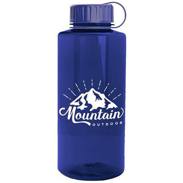 Garyline Transparent Navy Mountaineer Tritan Bottle with Tethered Lid - 36 oz.