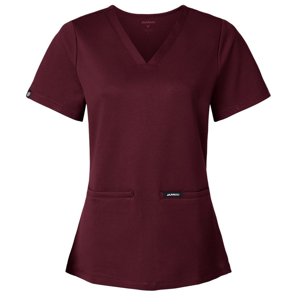 Jaanuu Women's Burgundy Cesi Ultrasoft Scrub V-Neck Top