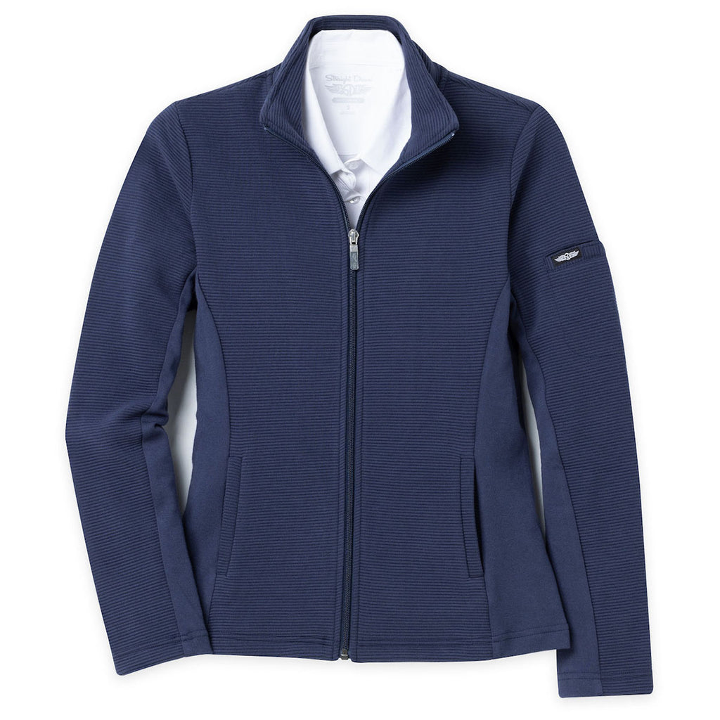 Elevate custom outerwear collections with the Straight Down Women's Indigo Swing Jacket. This lightweight piece blends function with fashion, offering wind protection in a modern A-line design. The standing collar and zip front give it polish, while the stretch fabric adds comfort, which is ideal for branding or upscale activewear programs.Highlights