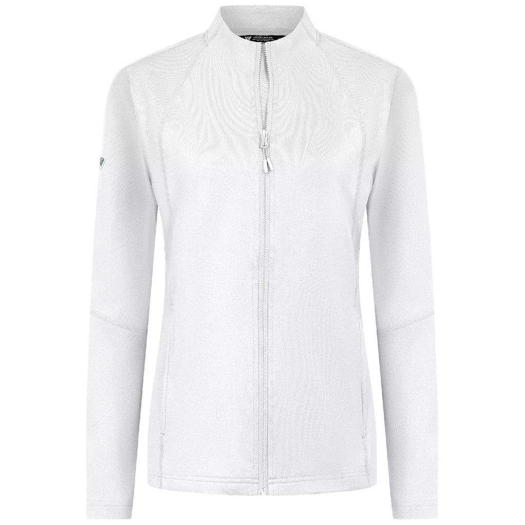 The Levelwear Women's White Mesa Full Zip provides a flattering fit and custom-ready details perfect for corporate layering. Its stretch fleece construction and contoured design offer warmth without bulk, making it ideal for commutes, conferences, or casual Fridays. Add your logo for a branded style that moves effortlessly between work and life.This product cannot ship outside of the United States.